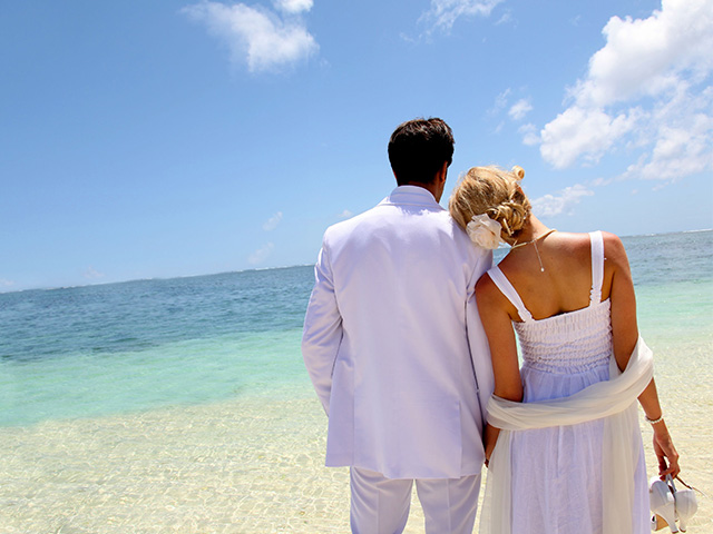 Large ball gowns, long trains and heavy fabrics should be avoided at all costs when it comes to a destination wedding. Not only would it be a hassle to transport the gown to the location, but the gown itself could turn into a wedding day disaster. For a large ball gown or long train, expect large amounts of sand to brown the edges of the skirt. Not only will this be an unpleasant site on a white gown, but it will become an annoyance when you begin to drag the sand across the entire venue.