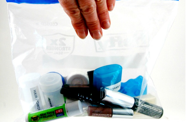 According to a friend who works for the TSA, “If it flows, it goes [into the 3-1-1 bag].” While mascara, lip gloss, liquid lipstick, moisturizing gel, and Retin A cream don’t flow, they are liquid enough for me. I err on the conservative side. Technically, the only thing in my 3-1-1 bag that actually flows is skin toner/astringent. But to be cautious, I include the mascara, lip stuff and Retin A in the bag. You know, just to be legal.