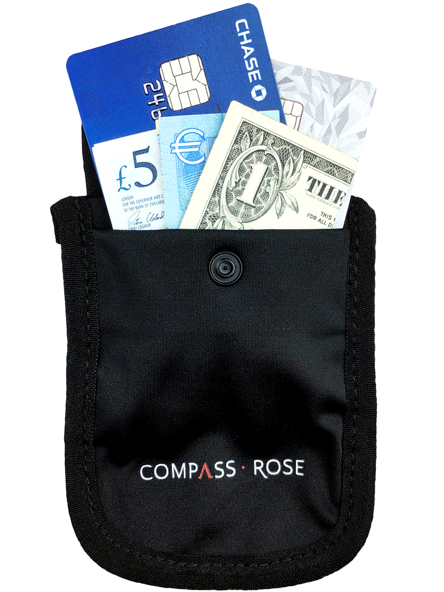 The Compass Rose Secret Bra Wallet with RFID is an anti-theft device that you can use as a second, hidden money stash to store excess cash and cards so you only need to keep the essentials in your wallet. Should your purse get stolen or lost, you will have the bulk of your cash and cards securely stored underneath your clothing so you’re never left unprepared. You can use this bra stash at home or while traveling and it can also be used for festivals, for a night out, or when you don’t feel like carrying a purse.