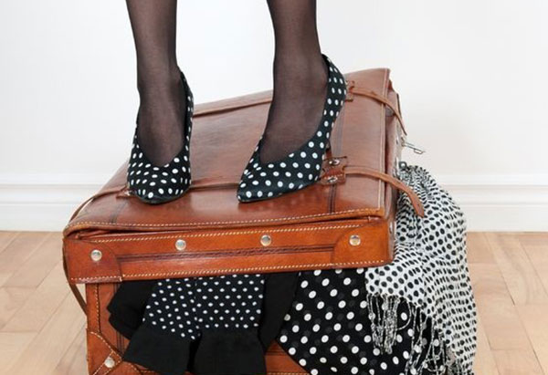 In order to save space, you should put your heels and shoes in travel shoe bags, fill the empty spaces and the shoes with socks, tights and leggings you are planning on packing anyways. The travel shoe bags will also protect your shoes and your clothes.